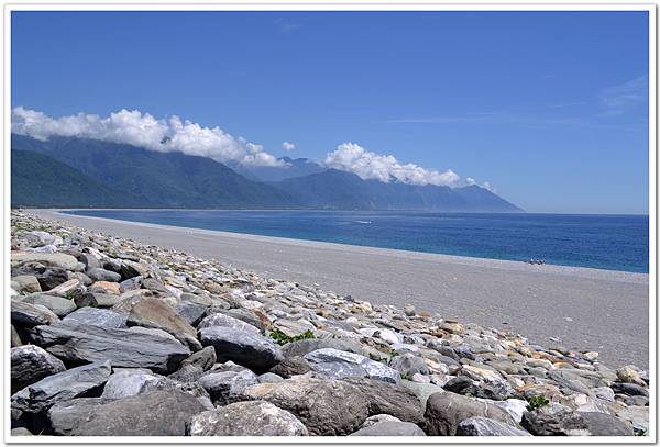 今天的第一個目的地是花蓮的七星潭,這邊是我第一次來,藍天白雲好天氣讓海邊更是顯得炎熱。